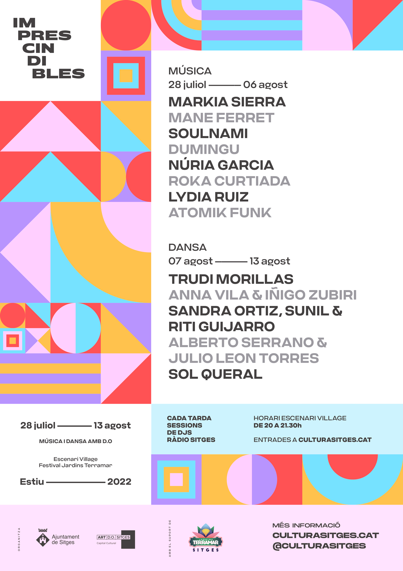 El cicle Imprescindibles és, doncs, una aposta pel talent de proximitat. En el marc del festival Jardins Terramar, una sèrie de músics i intèrprets de dansa de Sitges i de la resta de la comarca del Garraf, ofereixen actuacions en petit format com a prèvia als grans concerts principals del festival.